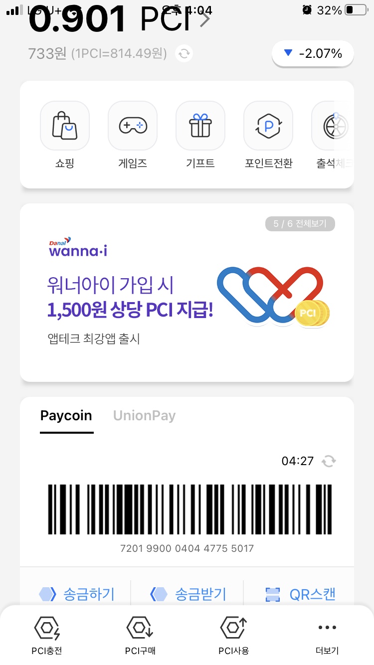 등록 시 2PCI(페이코인) 주기 때문입니다.